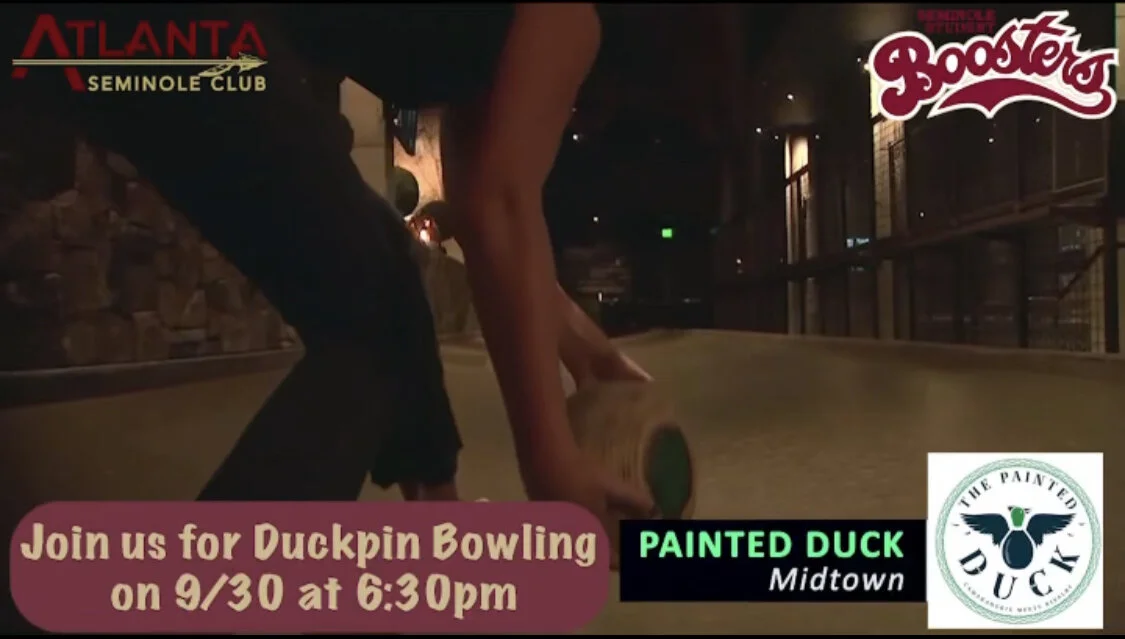 ATL Noles are meeting up on Thursday, 9/30 at 6:30pm at the Painted Duck for duckpin bowling, drinks, and good vibes! See you there!